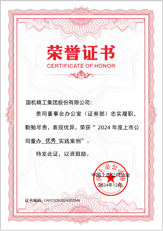 2月19日,中国上市公司协会发布了“2024上市公司董办最佳实践”案例征集活动结果。作为央企控股上市公司,凭借上市以来规范运作、信息披露、公司治理、投资者关系管理、ESG管理等方面的卓越表现荣获“2024年度上市公司董办优秀实践案例”。